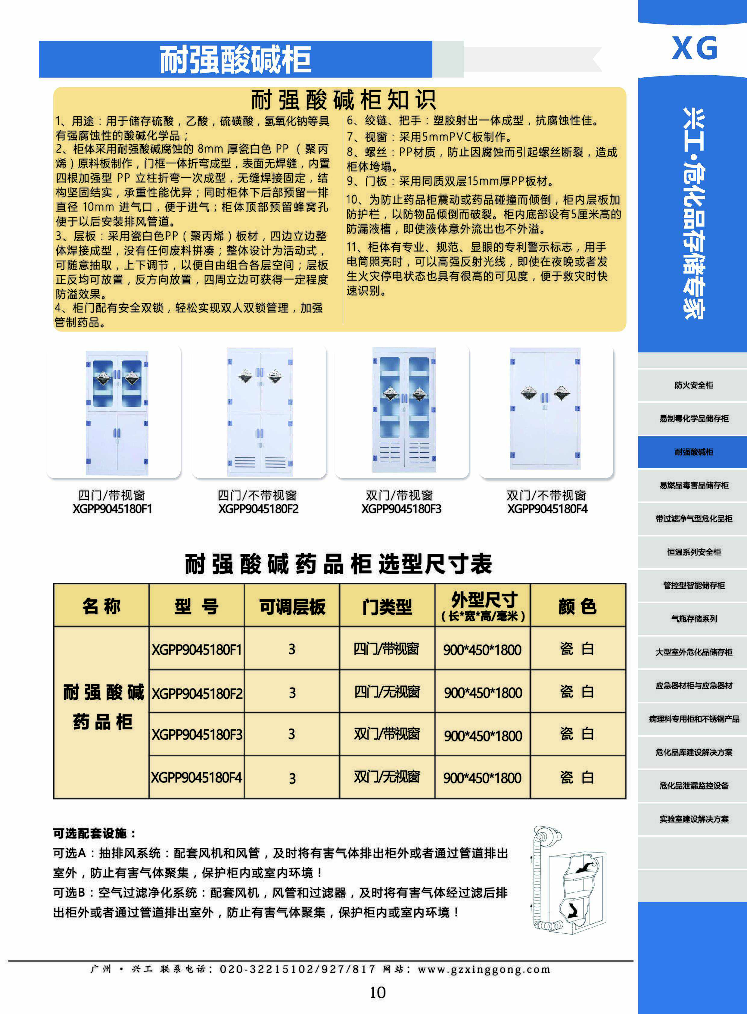 10,为防止药品柜震动或药品碰撞而倾倒,柜内层板加防护栏,以防物品倾倒而破裂。柜内底部设有5厘米高的防漏液槽使意外流出的液体不外溢;